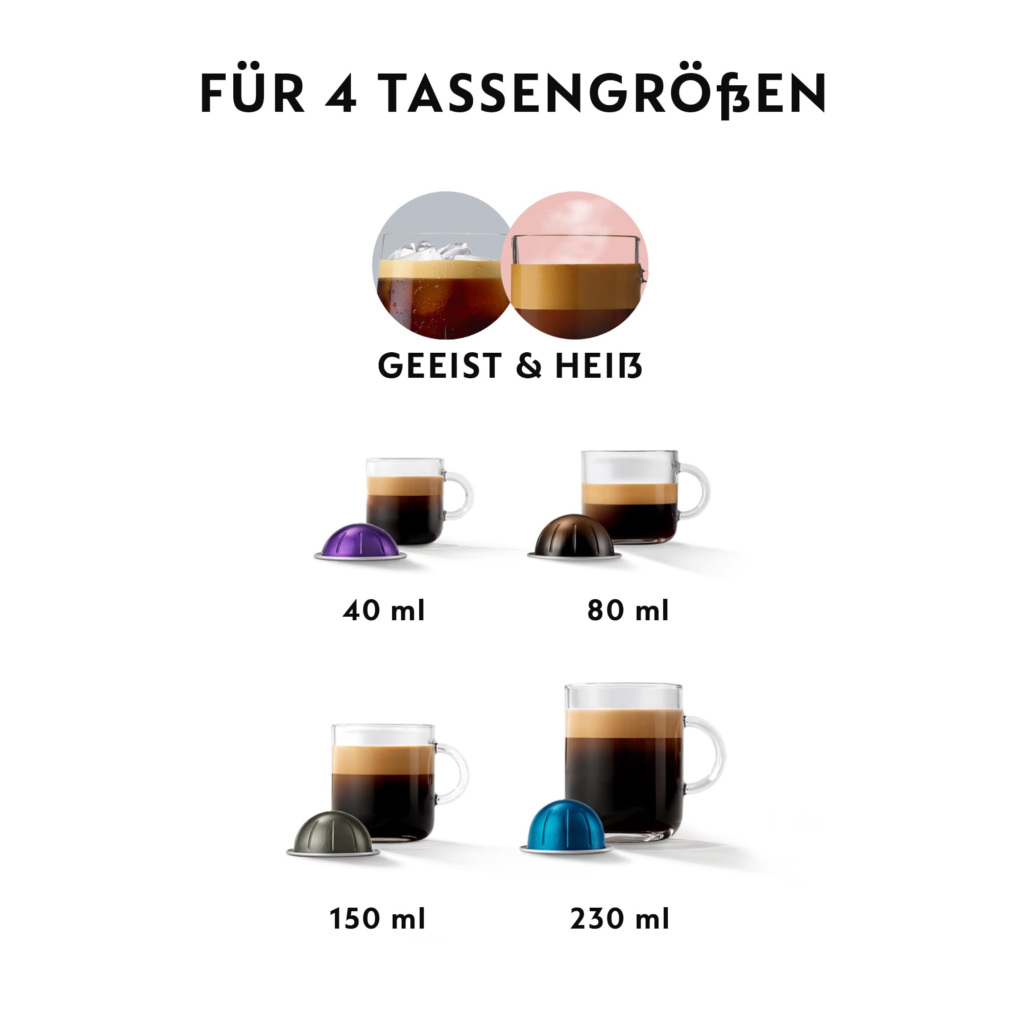 - VIELSEITIGE NESPRESSO TASSENGRÖßEN: Eine Nespresso-Kaffeemaschine für vier verschiedene Tassengrößen: Tasse Kaffee, Gran Lungo, doppelter Espresso und Espresso, über drei verschiedene Kaffeekapselgrößen.