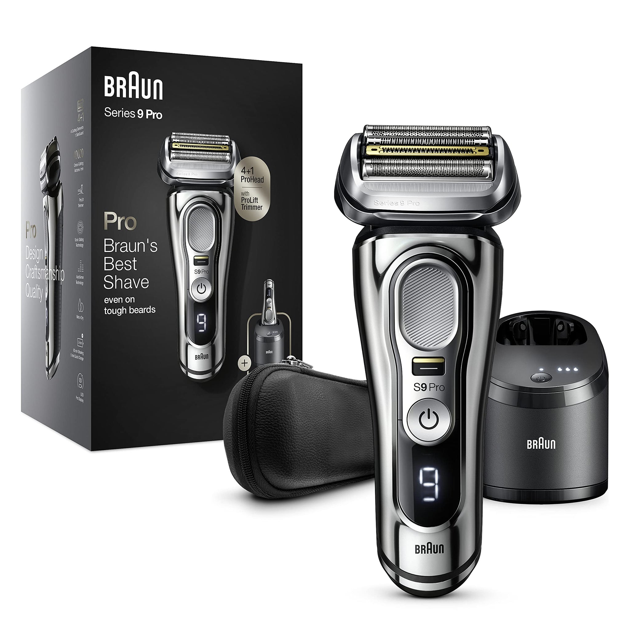 Braun Series 9 Pro Elektrorasierer 9466 CC Herren, Bartrasierer mit ProLift-Trimmer und 4-in-1-Kopf, 5-in-1-Reinigungs- und Ladecenter, Tasche, wiederaufladbar, kabellos, 9466 CC, Chrom